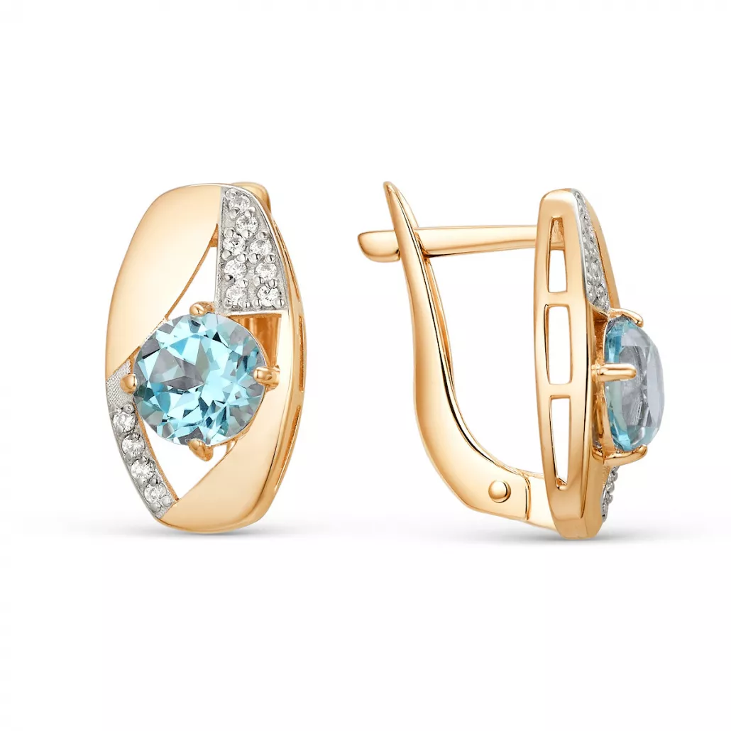 Серьги с топазом и фианитом из золота