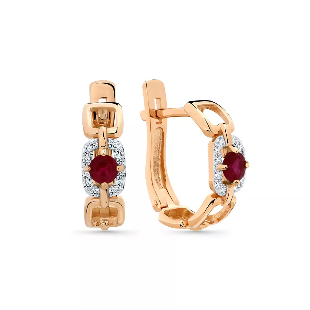 ОписаниеСерьги с бриллиантами из золотаартикул: 2-109058-00-032 Рубин н. Кр 4 0,657 2/2; 24 Бр Кр 57 0,096 3/5 А - Материал